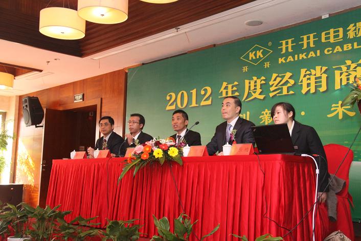 余紀炎董事長(cháng)作“2011年度公司總結分析及2012年公司戰略規劃”主題報告,充分肯定了全體員工在2011年付出的辛勤努力,感謝在過(guò)去的一年,經(jīng)銷(xiāo)商給予開(kāi)開(kāi)電纜的大力支持。同時(shí)指出公司在2012年的工作重點(diǎn)放在電纜的生產(chǎn)、銷(xiāo)售,并提出要進(jìn)一步提高公司產(chǎn)品品質(zhì)及服務(wù)質(zhì)量,要為客戶(hù)提供先進(jìn)、可靠的產(chǎn)品及更優(yōu)質(zhì)的服務(wù)。