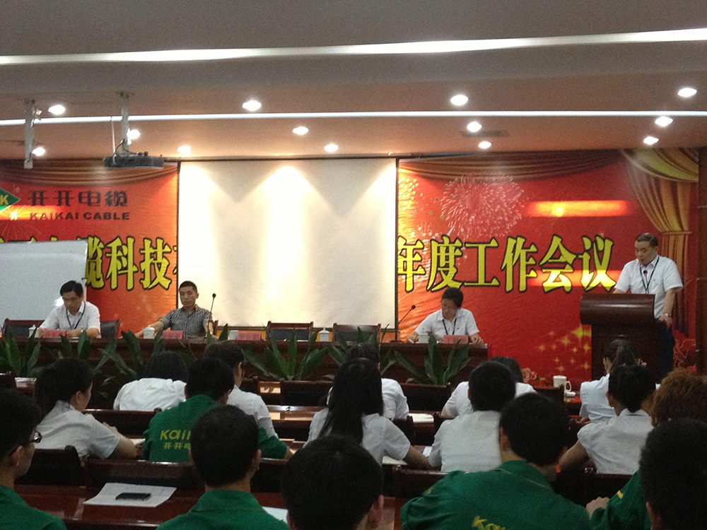 致力于為社會(huì )提供安全、節能、環(huán)保的電線(xiàn)電纜產(chǎn)品和服務(wù)為切實(shí)推行各部門(mén)2013年度工作規劃中的各項內容,及時(shí)對實(shí)施過(guò)程中發(fā)現的問(wèn)題予以糾偏,由此保證發(fā)展目標,確保各項內容的達成。2013年6月7日晚18:30,開(kāi)開(kāi)電纜科技有限公司2013年度行政員工大會(huì )在椒江廠(chǎng)區三樓會(huì )議室順利召開(kāi)。本次大會(huì )由總經(jīng)理助理丁婷婷主持。公司董事長(cháng)余紀炎,總經(jīng)理羅向陽(yáng),副總經(jīng)理徐華勝以及全體行政人員出席了本次會(huì )議。